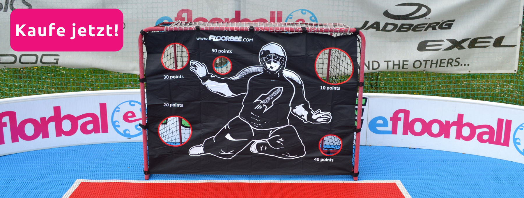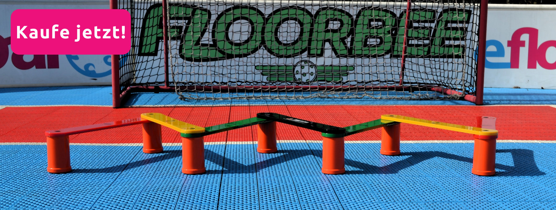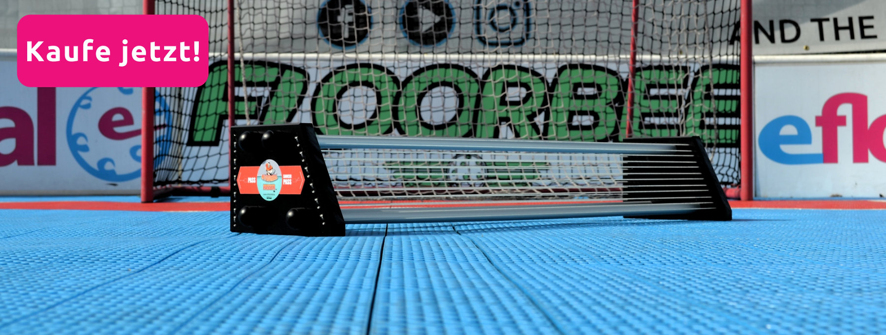 Wenn ihr jedoch zu Hause nicht genügend Platz habt, können wir euch das FLOORBEE Stable Dock 90x60cm empfehlen, eine kleinere Kopie des großen Floorballtores.