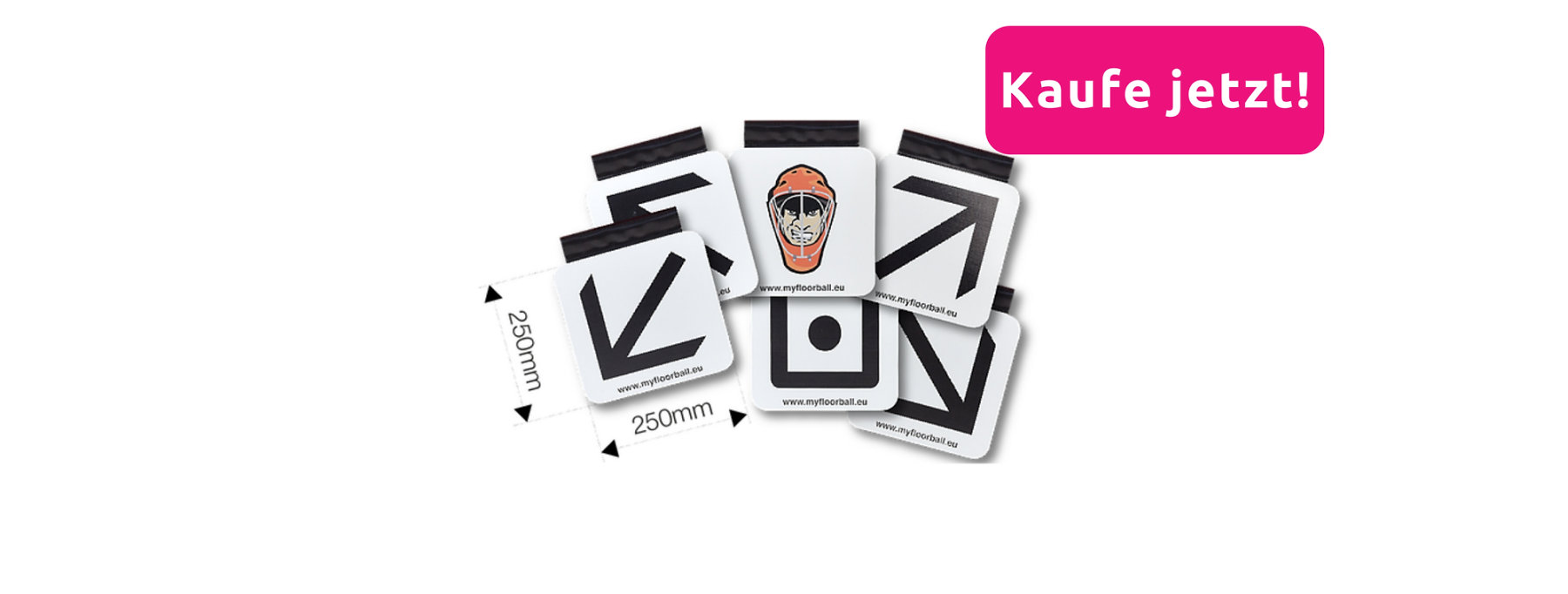 Ihr könnt verschiedene Optionen verwenden, um die Schussgenauigkeit zu verbessern. Die Grundoption ist die Verwendung von Floorball-Toren My Floorball Target Pro. Dies ist ein Set aus 6 Zielscheiben aus Kunststoff. Ihr könnt die Zielscheiben einfach an euer Tor hinzufügen und nach Bedarf platzieren.