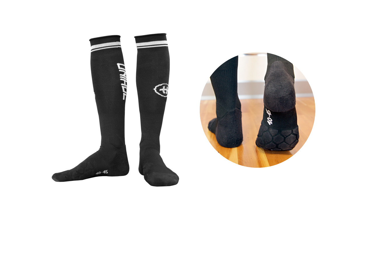 Verbesserte elastische Socken in attraktiven Farben aus hochwertigem Funktionsgestrick mit hohem Elasthan-Zusatz, die für Langzeitfestigkeit und Flexibilität sorgen. Der hintere Teil der Wade hat jetzt mehr Belüftung für mehr Komfort. Das Hauptmerkmal der Unihoc Profi-Socken sind hochwertige Stoffe, die im Gegensatz zu Kunstfasern nicht im Schuh verrutschen und somit wesentlich komfortabler, stabiler und sicherer für den Fuß sind (besonders spürbar beim Richtungswechsel oder beim raschen Bremsen auf einer harten Oberfläche, wo hohe Stabilität erforderlich ist). .