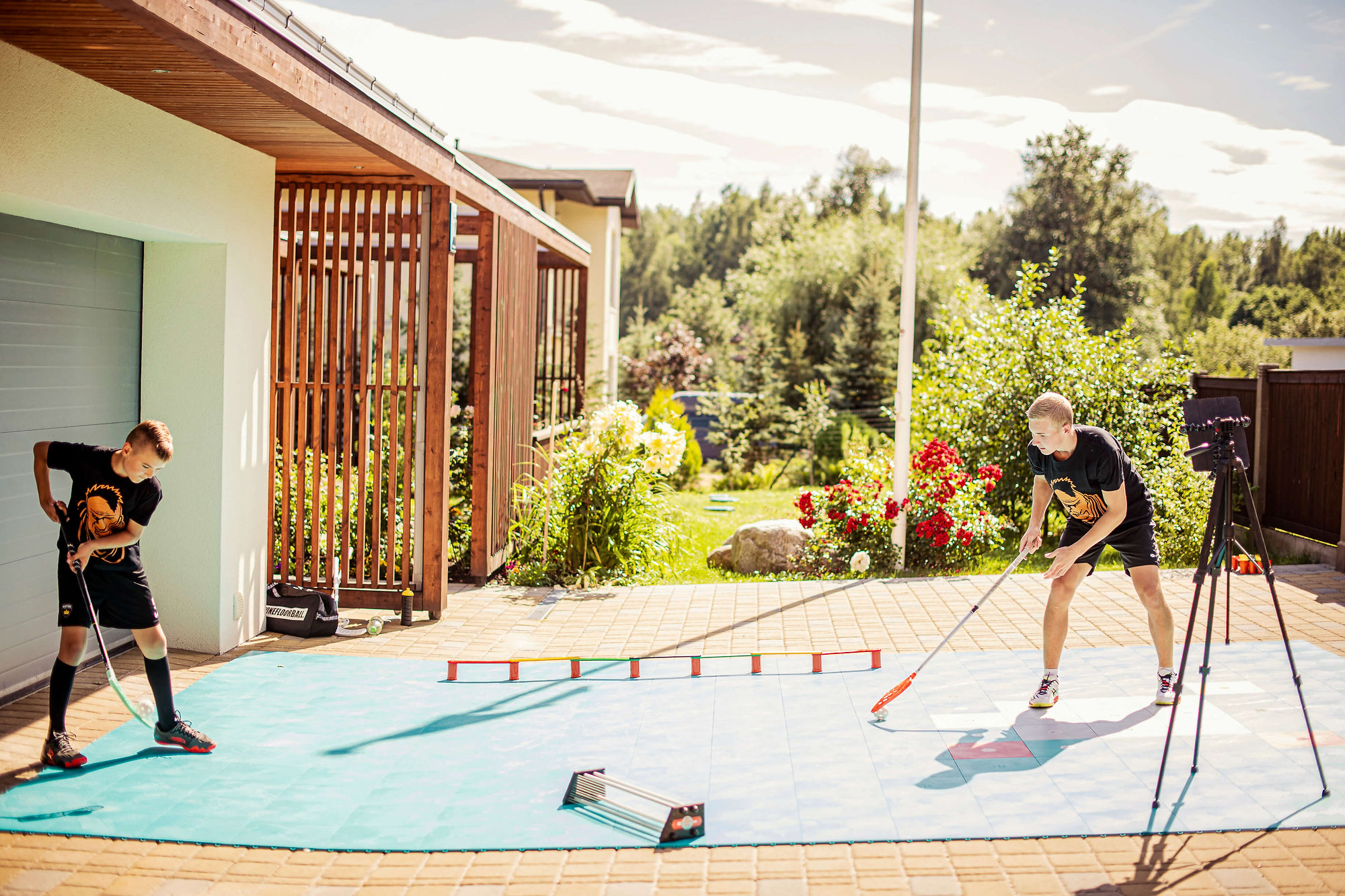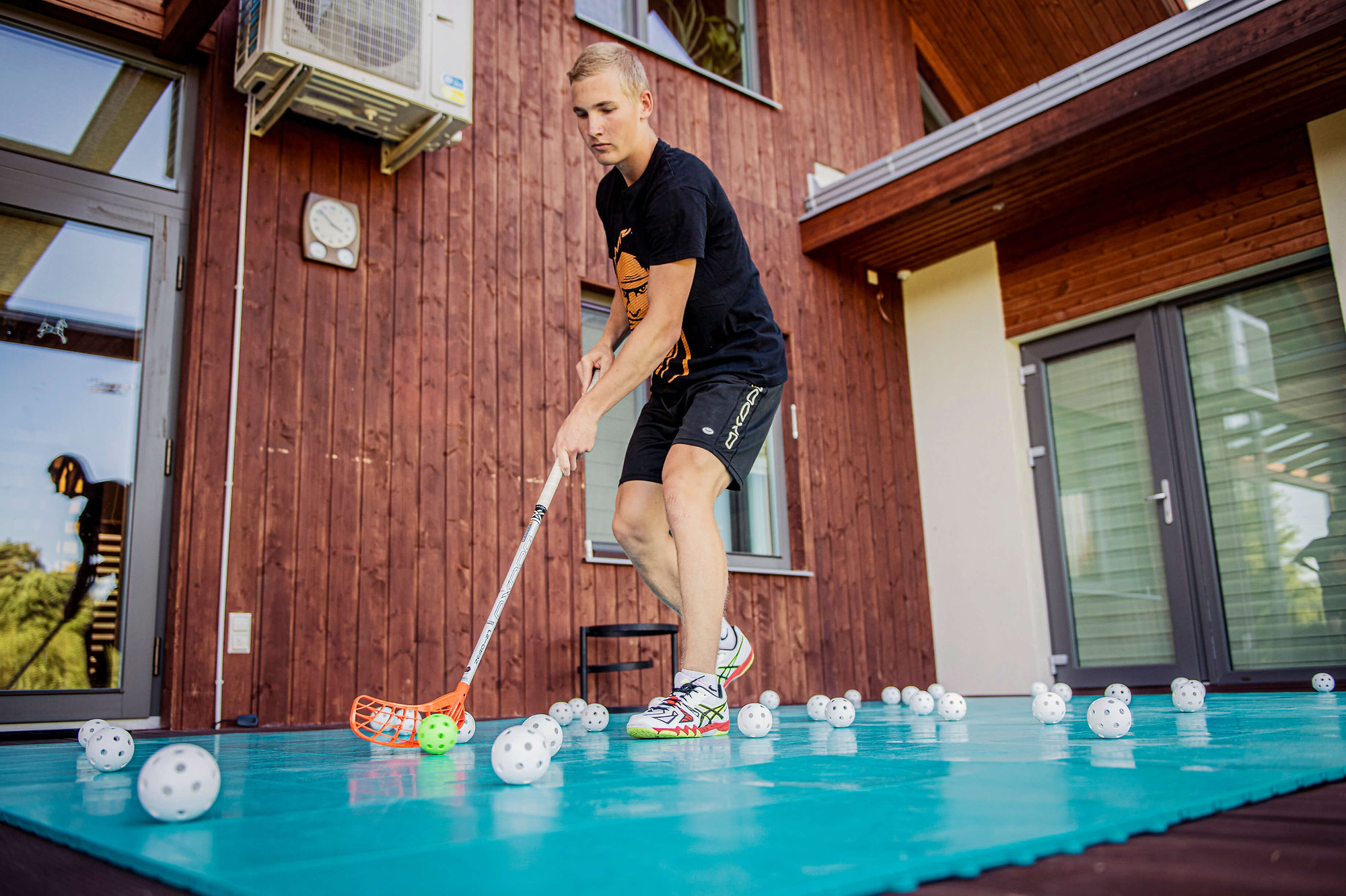 My Floorball FLOORING ist eine Oberfläche, die für Floorball entwickelt wurde, geeignet für den Innen- und Außenbereich. Es besteht aus modularen Kunststofffliesen, die nahtlos ineinanderpassen und eine glatte, stabile und durchgehende Spielfläche schaffen. Diese Oberfläche wurde von professionellen Floorballspielern und Trainern entwickelt und getestet, um die höchsten Standards zu erfüllen. Dank ihrer hohen Strapazierfähigkeit und leichten Transportierbarkeit kann sie nahezu überall eingesetzt werden.