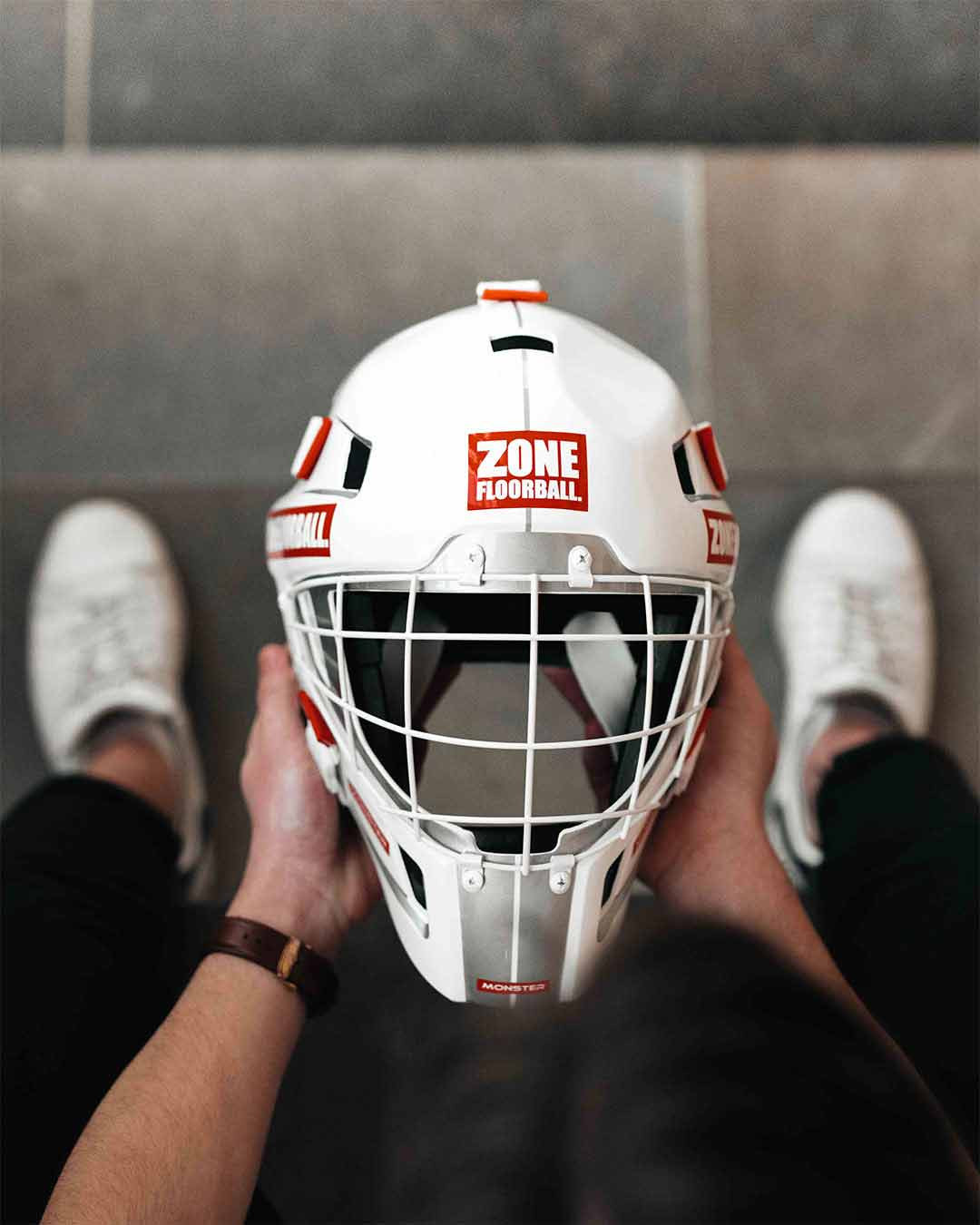 Der Kopf muss jederzeit ein Höchstmaß an Sicherheit und Komfort bieten. Diese Maske vereint die bewährten Elemente und die Erfahrung der Torhüter in einer Einheit. Die Maske ist leicht und ermöglicht es Ihnen, Ihren Kopf schnell zu bewegen, um eine perfekte Sicht auf das Spiel zu erhalten. Abnehmbare Kissen werden in die Maske gelegt. Es schützt den Kopf vor Stößen und leitet Schweiß effektiv ab. Der Kinnschutz ist aus weichem Schaumstoff und ist verstellbar. Damit die Maske perfekt zu jedem Torwart passt, lässt sie sich mit fünf Schnallen an der Außenseite der Maske leicht einstellen. Die Maske lässt sich leicht mit einer Hand anlegen und hält dank der elastischen Gummibänder auch in schwierigen Situationen und bei schweren Operationen sicher. Die Torhüter sind sich einig, dass der Helm auch dann fest sitzt, wenn sie auf den Ball springen müssen, und können sich darauf verlassen, dass sie den bestmöglichen Einblick in die umliegende Situation haben.