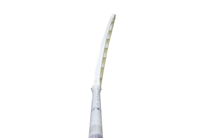 Die vorgewölbte und leicht konkave Spitze des Schlägerblattes kann besonders beim Sweeper-Schuss helfen, aber mit diesem Schlägerblatt kann man auch sehr gut einen Slap Shot ausführen. Das Gewicht liegt bei 74 Gramm.