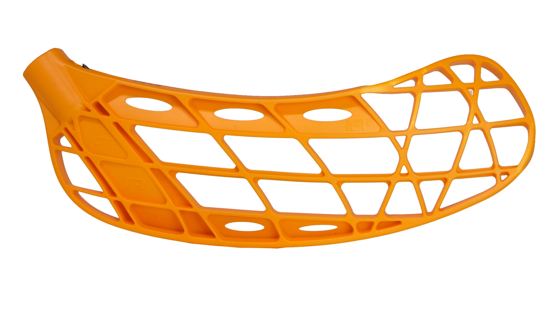 Die Konstruktion und Anordnung der Rippen macht die Klinge und insbesondere ihre Spitze sehr stark! Die Unter- und Oberkante sind gefüllt. Wenn Sie sich die Klinge genauer ansehen, werden Sie feststellen, dass die Rippen im vorderen Teil breiter sind als im hinteren Teil der Klinge. Dies führt zu einer größeren Steifheit der Klingenspitze und gleichzeitig zu einer besseren Kontrolle über den Ball und vor allem zu einem hervorragenden Schlagzeugschießen. Die dicke Mittelrippe sorgt auch für einen weicheren Griff und reduziert gleichzeitig das Abprallen der Bälle, sodass der Ball gut auf der Klinge hält. Sein Gewicht beträgt 71 Gramm.