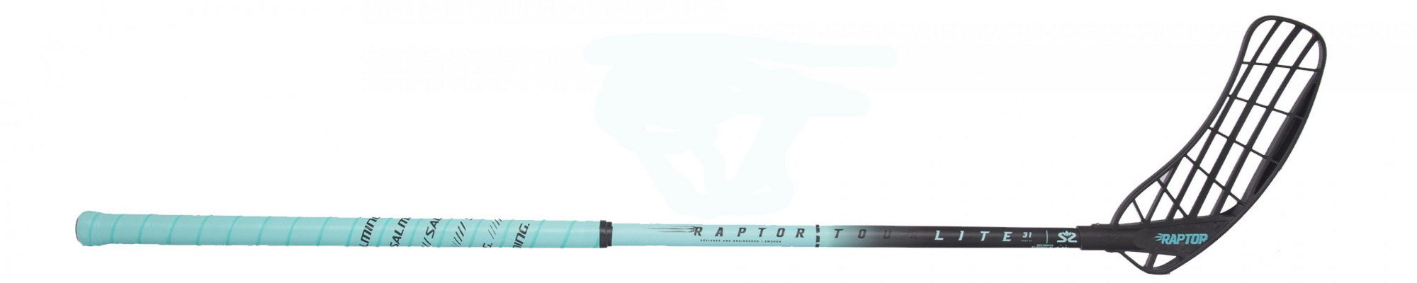 An der Unterkante der Klinge befinden sich drei rückenverpackte Rückhandseiten, die auch die Steifheit der Klinge unterstützen und unterstreichen. Die Designer konnten das meiste Gewicht an einem dünneren Rahmen entlang der gesamten Klinge und an einem raffinierten Fuß sparen, der von der Rückhandseite hohl ist. Diese Klinge wurde von Albin Sjögren, Spieler Storvreta IBK und der schwedischen Nationalmannschaft mitentwickelt und getestet. Das glänzende Salming Raptor-Logo ist auf dem Fuß aufgedruckt.