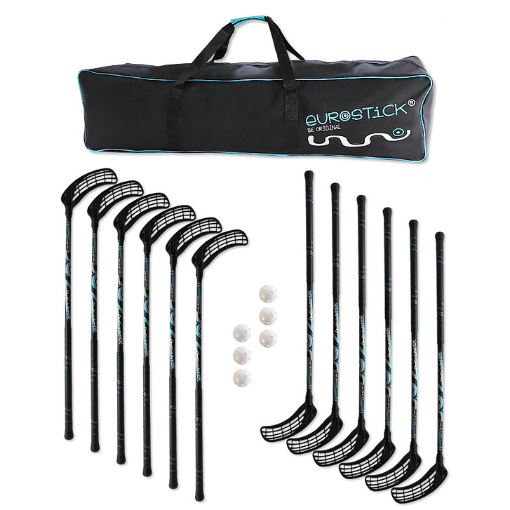 Der Eurostick Doz ist ein komplettes Set für Unihockey-Enthusiasten, bestehend aus 12 Schlägern und 6 Bällen, geliefert in einer praktischen Werkzeugtasche für einfachen Transport.