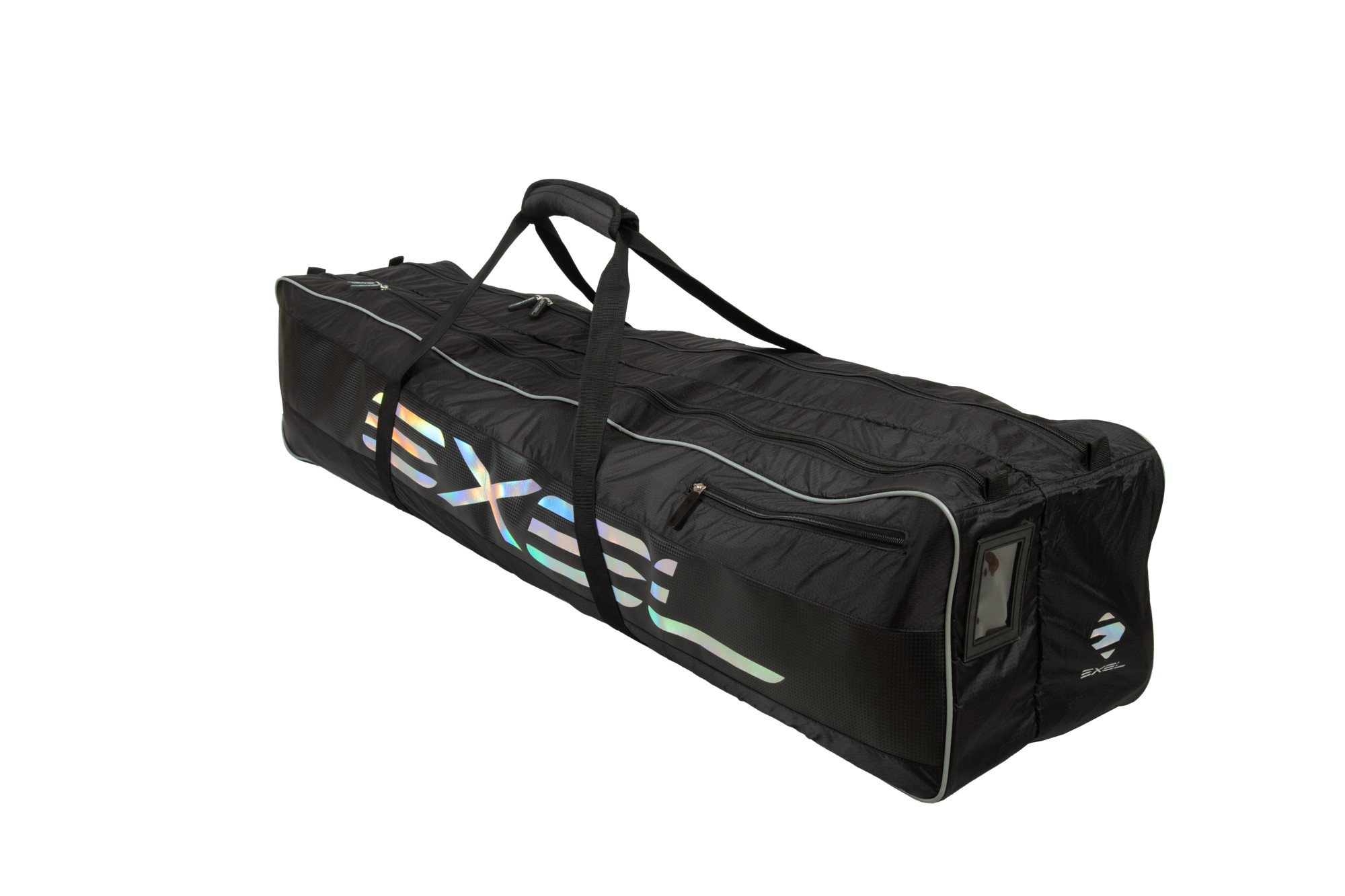 EXELLENT TOOLBAG der Marke EXEL ist eine klassische Werkzeugtasche, die mit zwei großen Reißverschlusstaschen und kleineren Fächern zur praktischen Organisation von Unihockey-Ausrüstung und anderen Gegenständen ausgestattet ist, die der Spieler immer bei sich haben möchte. Die Tasche verfügt über separate Taschen für Unihockeyschläger und eine Innentasche mit Reißverschluss, damit der Spieler seine Unihockeyausrüstung immer in Ordnung hat. Diese Werkzeugtasche ist extrem leicht und langlebig. Das außergewöhnliche Design der Tasche besteht hauptsächlich aus Hologramm-Logos. Die Tasche verfügt über einen verstellbaren Riemen über der Schulter und 2 Riemen zum Tragen in den Händen.